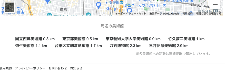 美術館詳細ページで、周辺の美術館が表示されるようになりました!